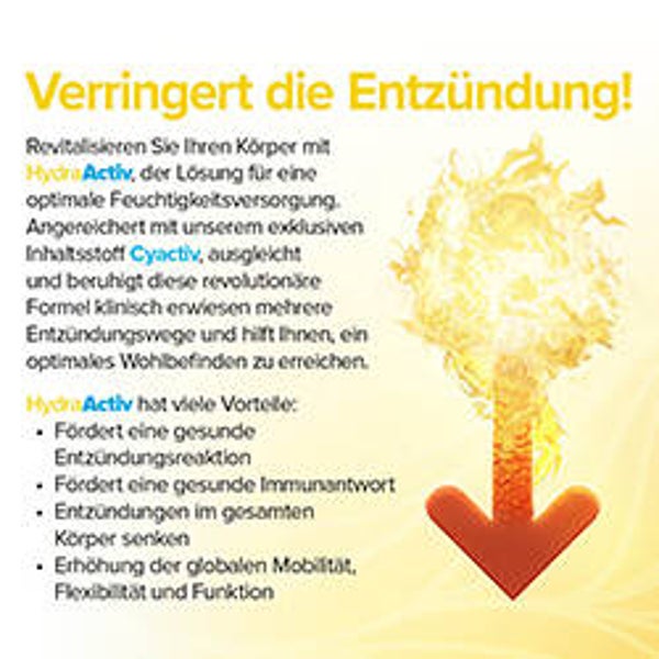 HydraActiv enthält die dreifache Menge an Elektrolyten normaler Sportgetränke, den exklusiven Zusatzstoff von Cerule - Cyactiv - und die am besten bioverfügbare Form von Magnesium - Magnesiumglycinat. Zusammen tragen diese hervorragenden Inhaltsstoffe zu einer schnelleren Flüssigkeitszufuhr im Körper bei, reduzieren Entzündungen im gesamten Körper, verbessern die kardiovaskuläre Gesundheit und stärken Ihr Immunsystem. HydraActiv wird Ihnen helfen, die transformative Kraft von innen heraus zu erfahren, um einen starken, gesunden und aktiven Lebensstil zu erreichen.